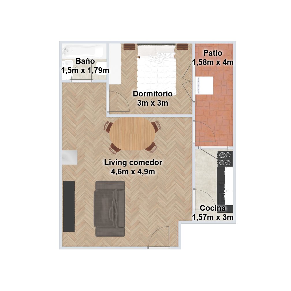 La propiedad se encuentra en excelente estado, con baño y cocinas hechos a nuevo. Cuenta con una superficie total de 47m², con 6,12m² de patio.